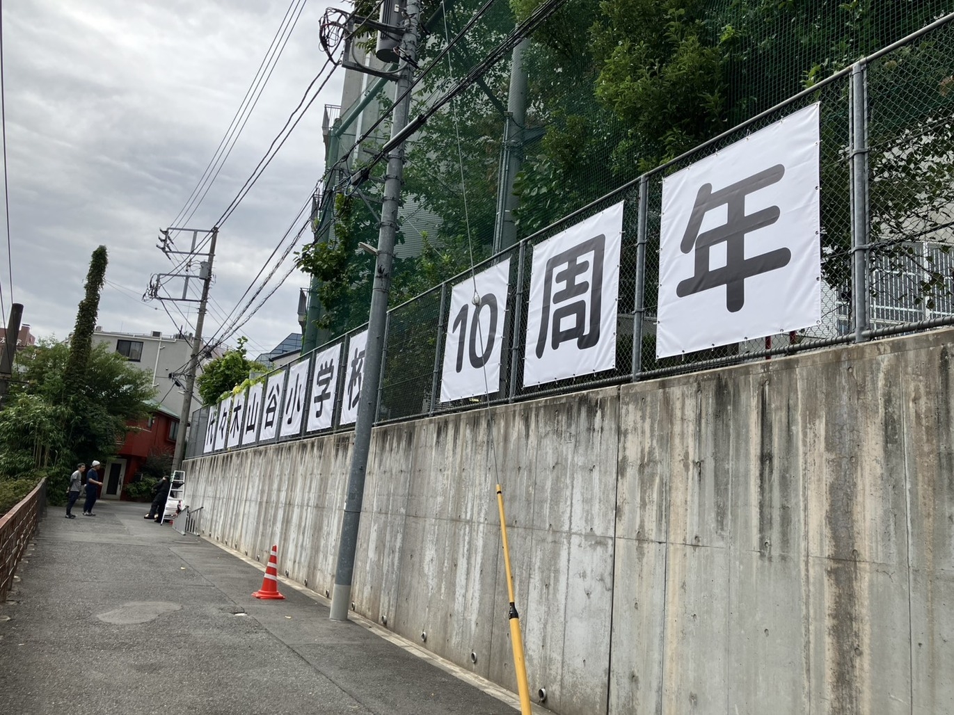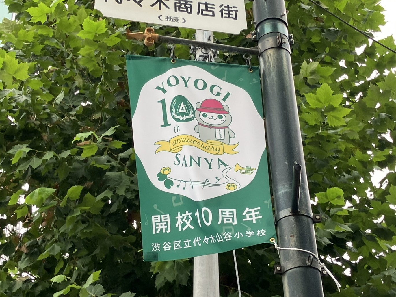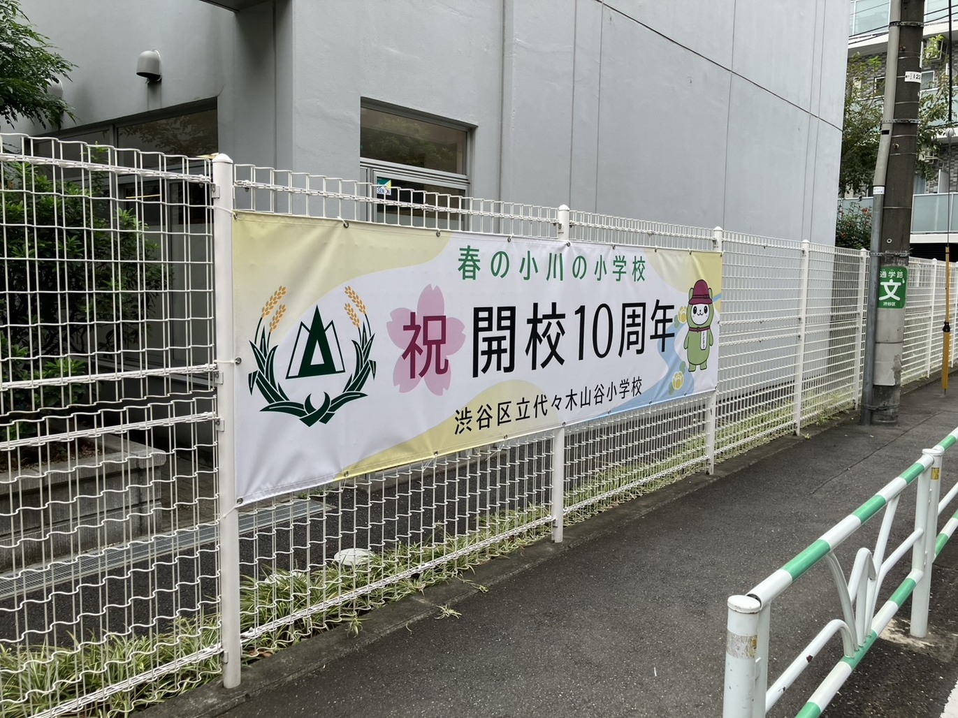 創立10周年(名前がいまの山谷小学校になってから10年とのこと) 記念として、校舎のフェンスや商店街にサインを掲示して盛り上げていきたい、ということで