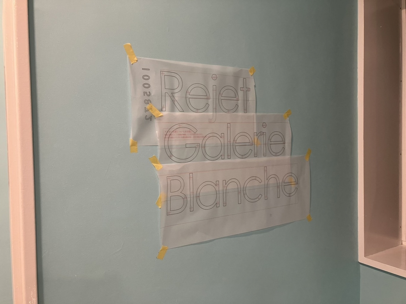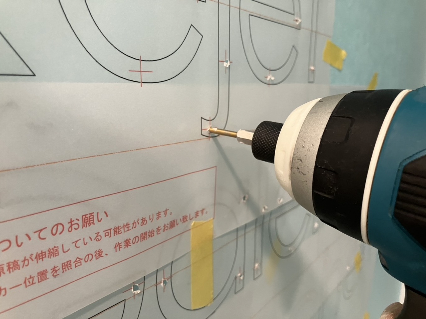 まずは紙原稿を壁にあてて、お客様に取り付け位置を見てもらいます。